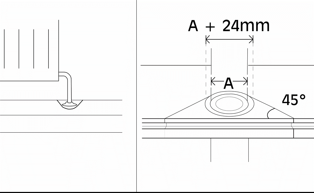A tapered wedge is cut out, so that it can be glued in place. This gap is covered using a radiator pipe cover.